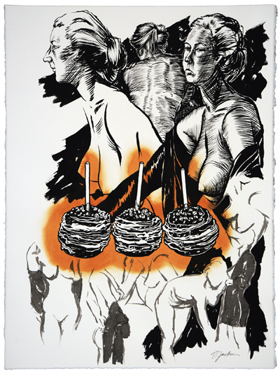 Candy Apples, ink and watercolor, 2013, 30" X 22"