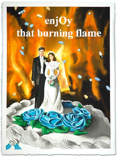 enjOy that burning flame, ink, watercolor, gesso, and pencil, 2006, 30" X 22.5"