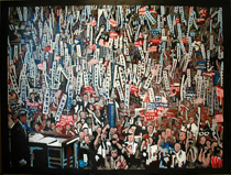 In the Figge's members' news magazine curator Michelle Robinson wrote: "The paintings of Cedar Rapids artist Tom Jackson display the contrast and similarities between two well-known Iowa pastimes: political involvement and state fairs. Iowa's caucuses and early primaries signal the start of a long political season that features prominently in presidential campaigns. State fairs represent activism on a different level, an annual tradition of participation and interaction. Both share crowds of people, over-the-top marketing, and a sensory overload that are all explored through Jackson's large-scale paintings."